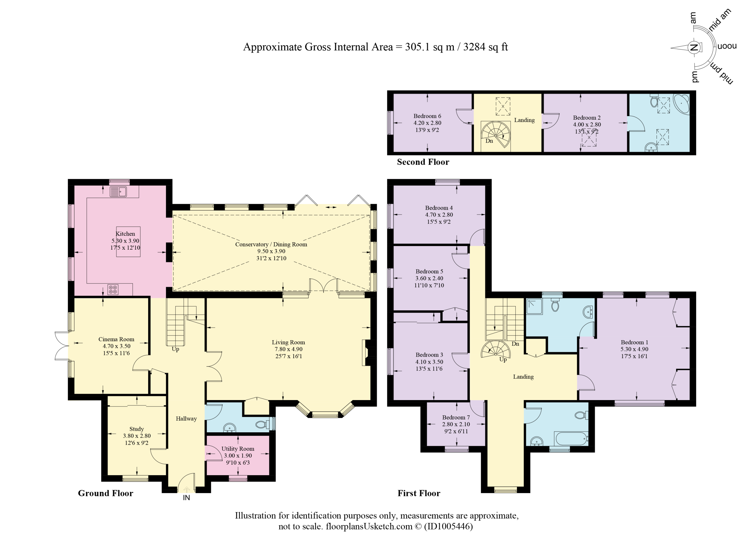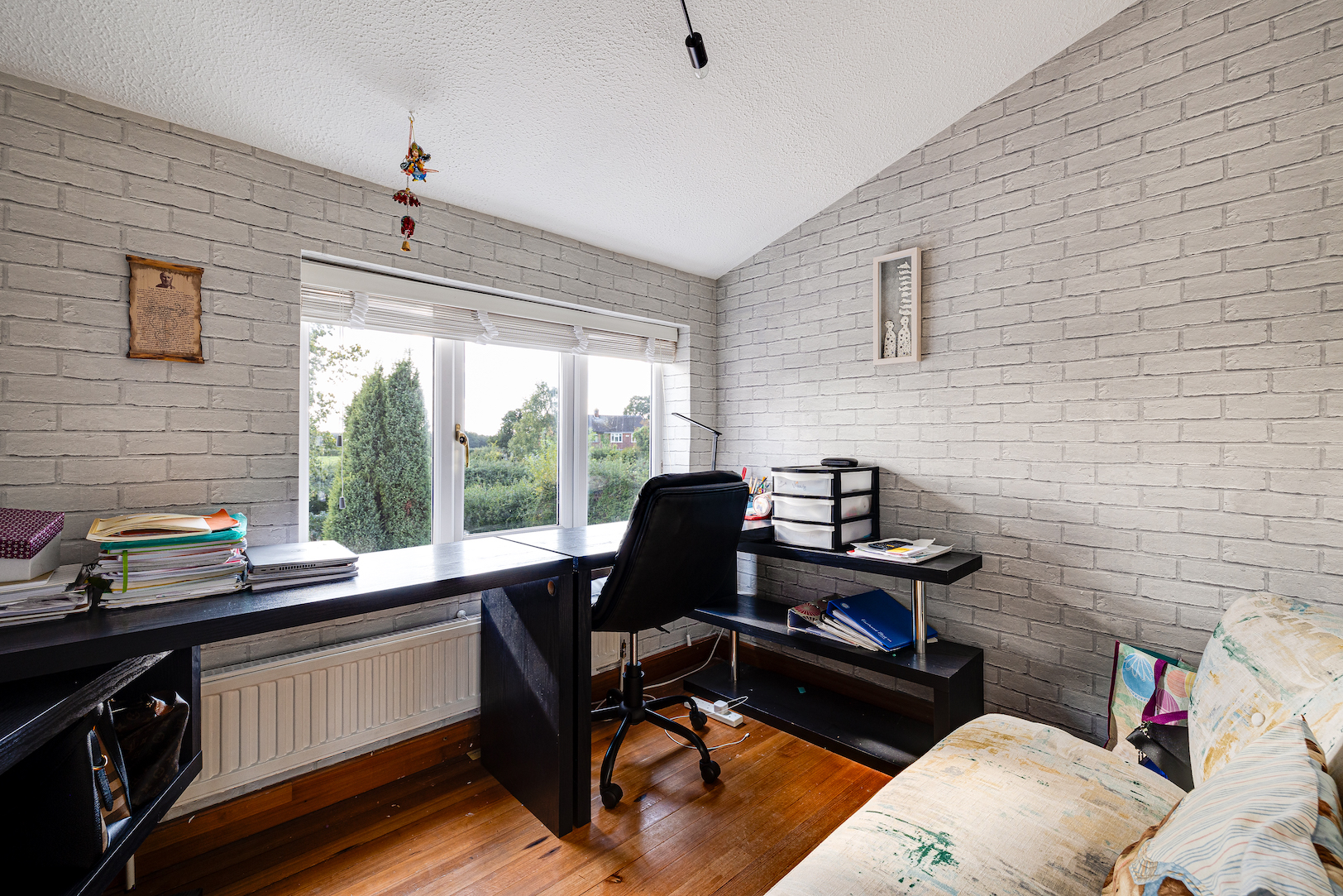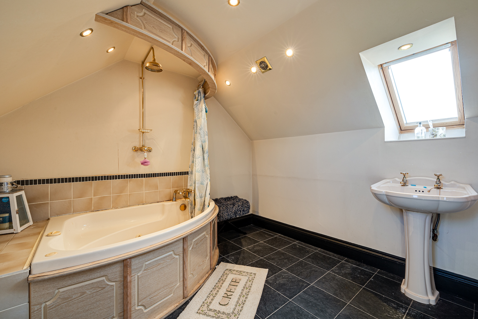 Storage is available in the large linen closet on the landing, as you make your way along to the study; a room that could easily serve as a double bedroom and overlooking the rear garden and rolling countryside.
