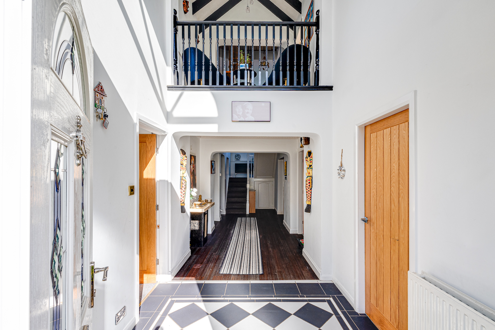 Fragrant wisteria wends its way up the handsome façade of Far Hills, making your way to the front door, where stained glass panels draw light through into the stunning, double height entrance hallway.