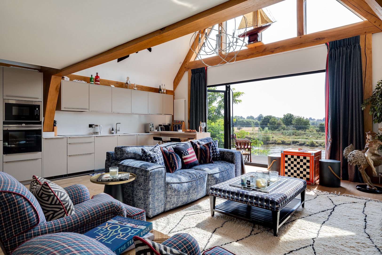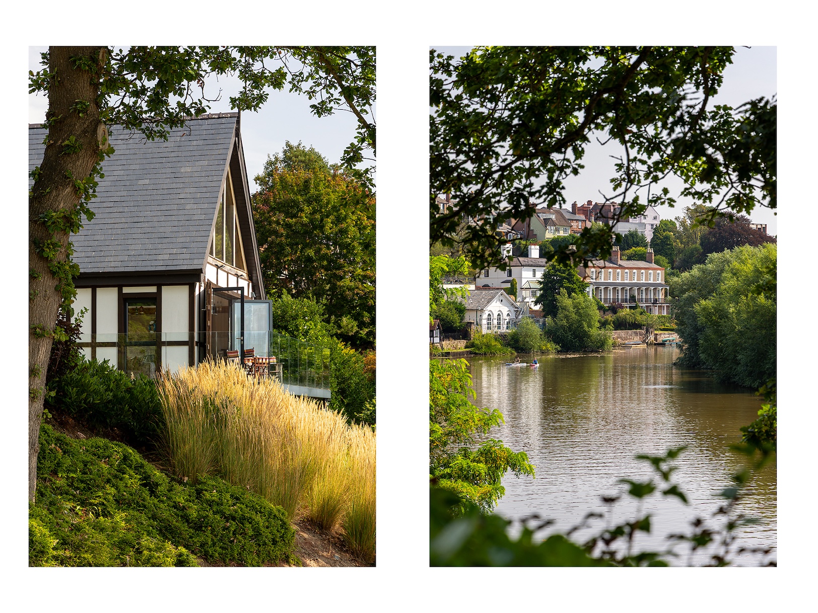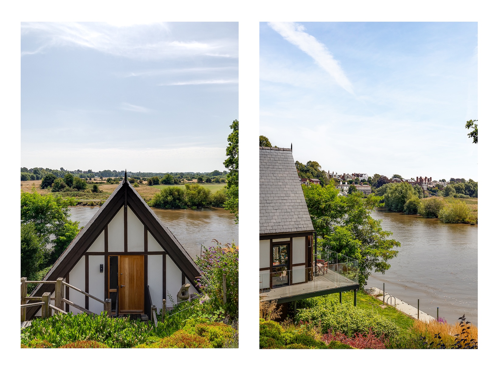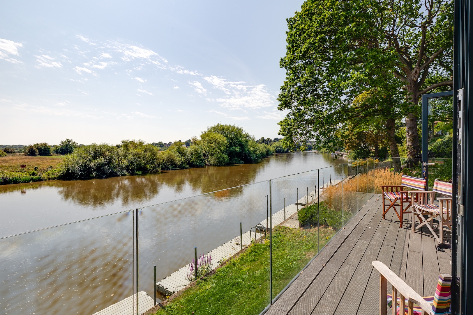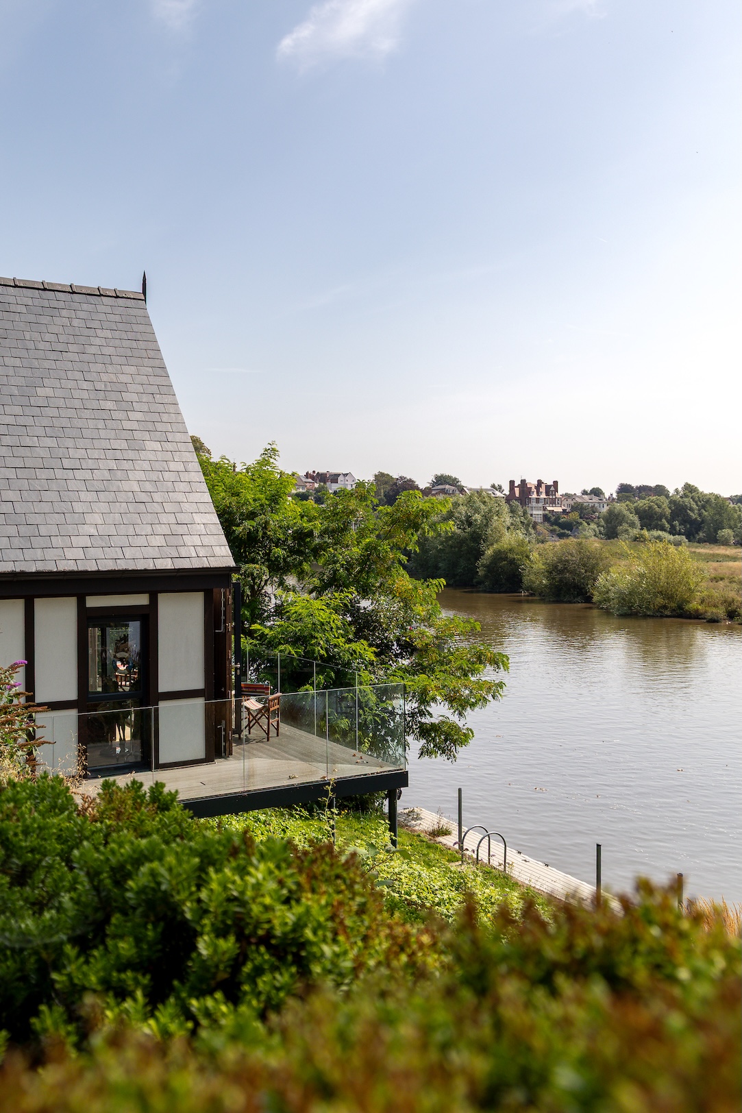 The approach to The Boathouse is both discreet and enchanting. Steps lead you down through landscaped grounds towards the water’s edge, creating a sense of anticipation as the river slowly comes into view. It is a fitting entrance to a property where natural beauty and thoughtful design intertwine.