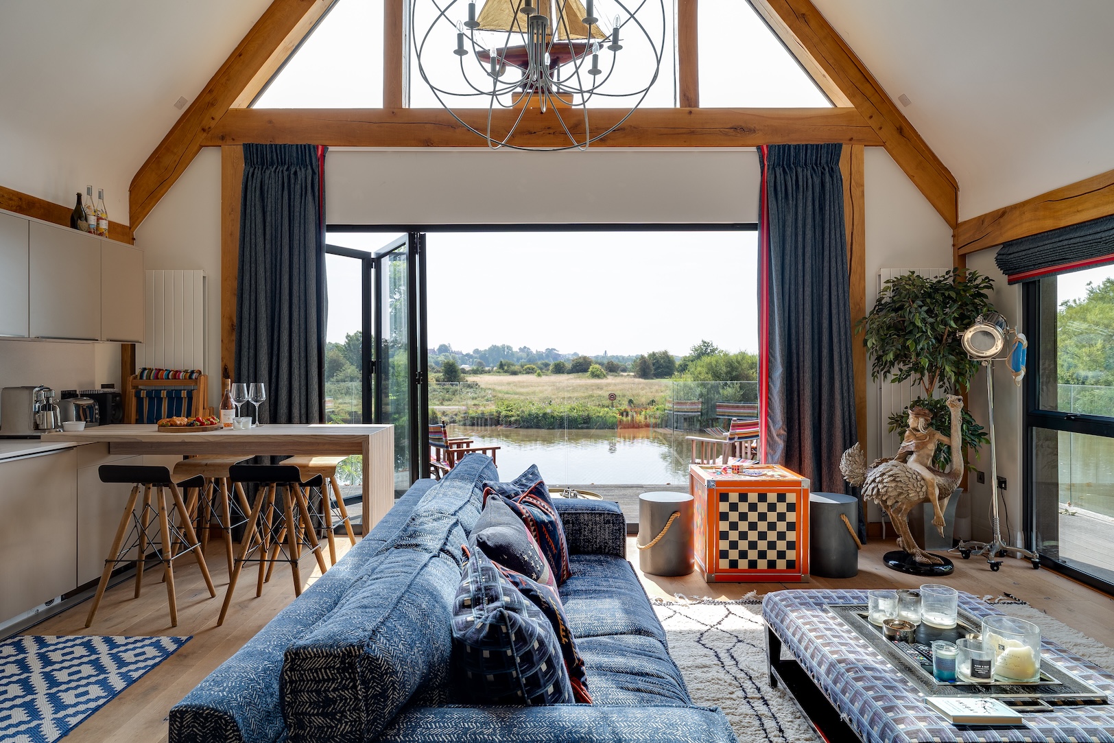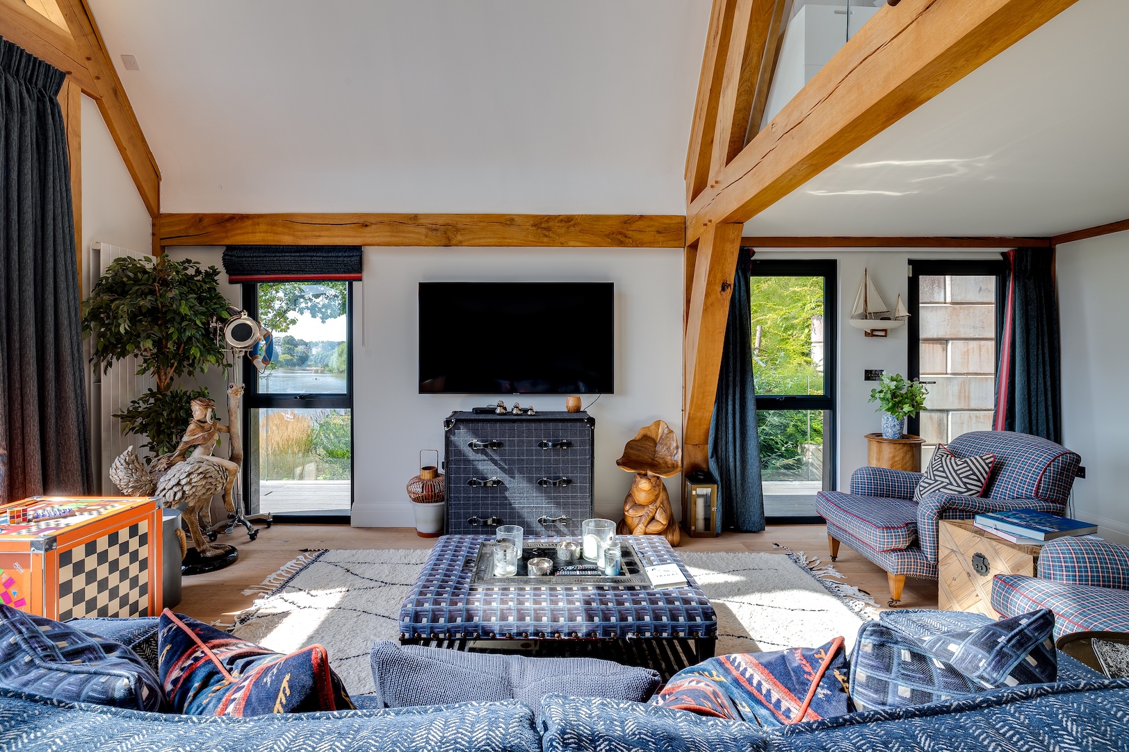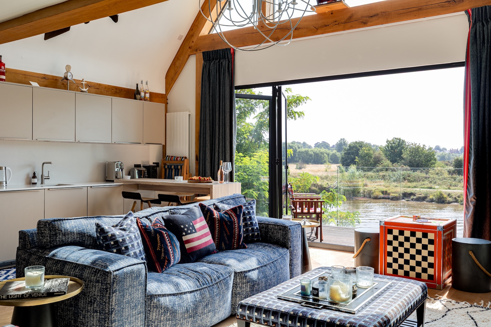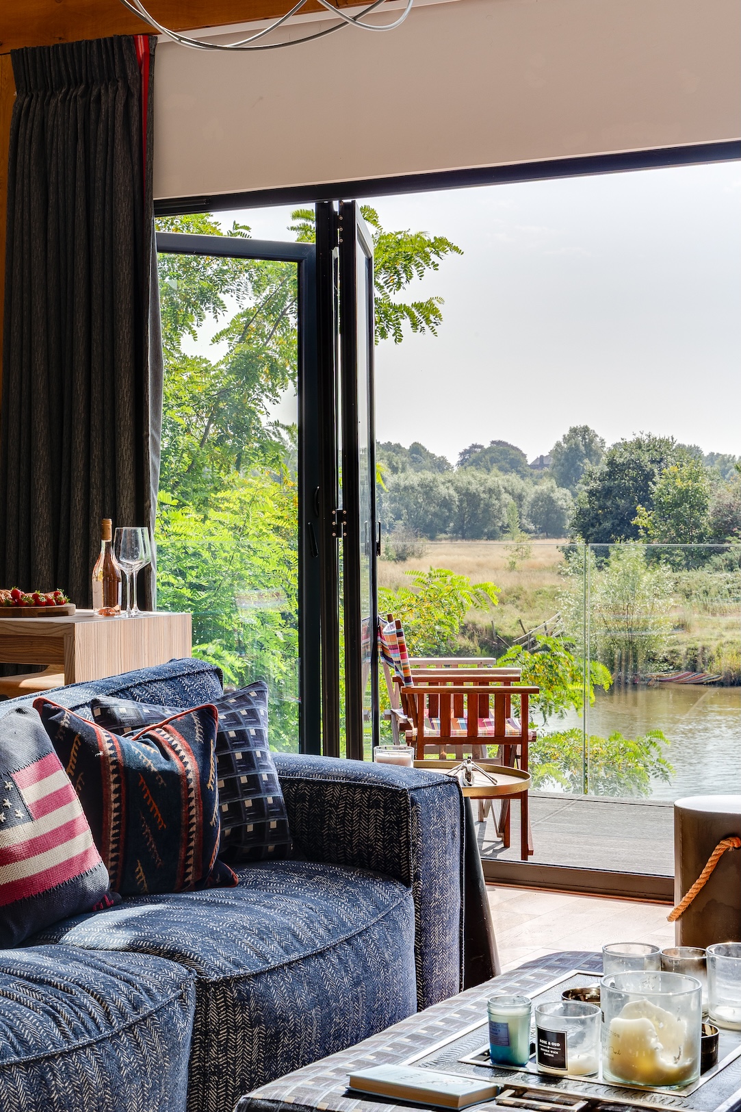The approach to The Boathouse is both discreet and enchanting. Steps lead you down through landscaped grounds towards the water’s edge, creating a sense of anticipation as the river slowly comes into view. It is a fitting entrance to a property where natural beauty and thoughtful design intertwine.