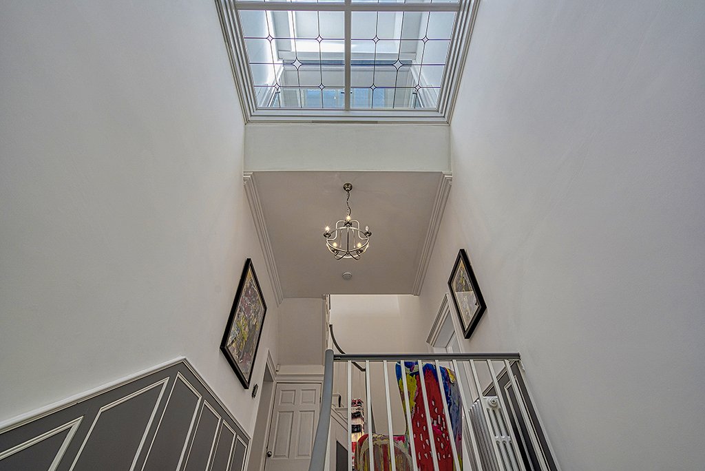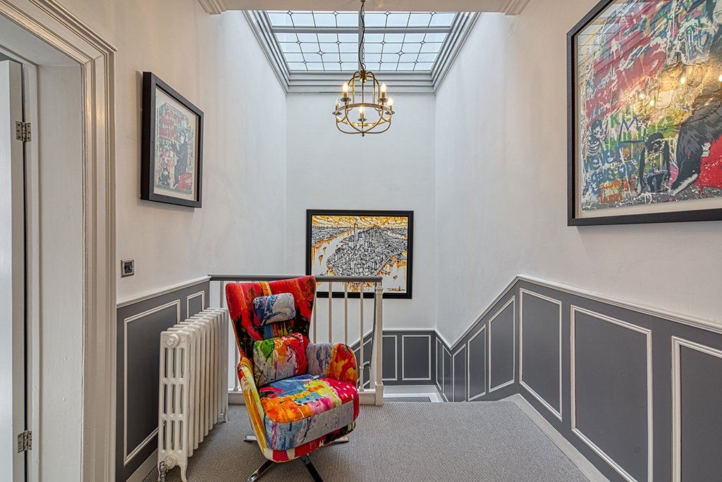Behind its handsome façade, Warwick House unfolds across four generous levels, each space beautifully composed and thoughtfully designed. From the moment you enter through the period front doors, the atmosphere is one of calm sophistication. The monochrome tiled hallway, recreated from the original Victorian pattern, and the soaring ceilings framed with classic cornicing, set the tone for the home’s enduring grace.