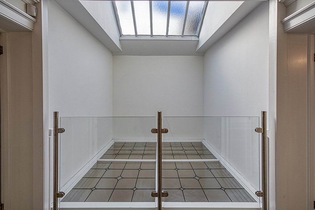 Descending to the lower ground floor, Warwick House reveals its contemporary versatility. Once a series of storerooms, this level has been transformed into a suite of flexible spaces, perfect for home working, fitness or creative pursuits. An impressive home office with vaulted ceiling and subtle industrial finishes offers a professional yet inspiring environment, while a separate studio area provides room for exercise or recreation. The historic arched wine cellar, whitewashed and illuminated, pays homage to the building’s storied past.