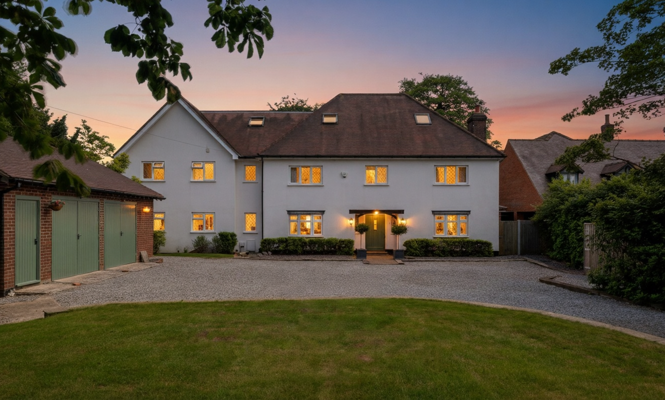 Set along the distinctive and sought-after Townfield Lane, a peaceful, leafy road known for its individual homes, The Thatch sits quietly behind a veil of mature trees, tucked back from the lane, on a plot that was once part of the sweeping driveway to Mollington Hall.