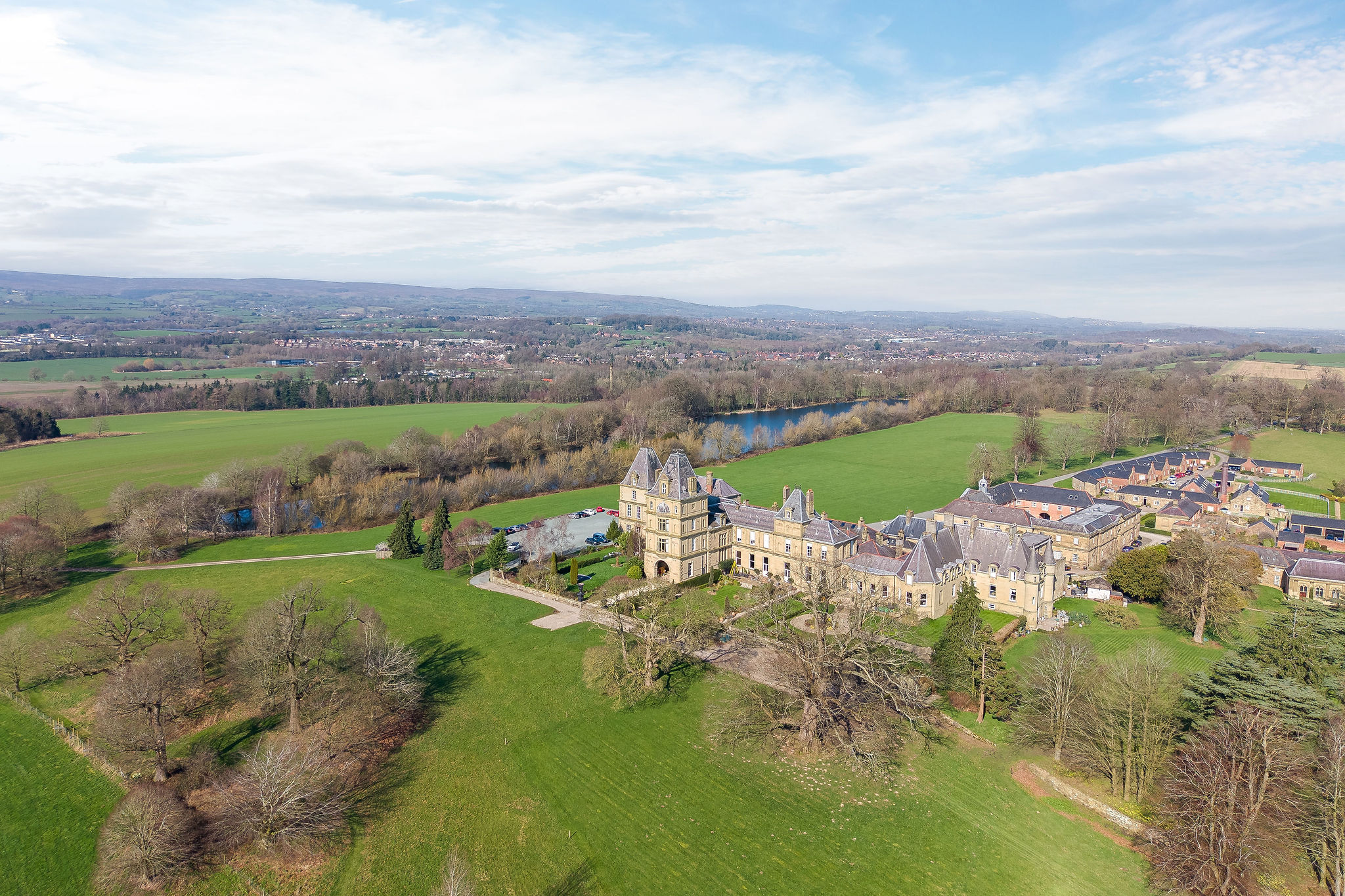 A storybook setting for young and old, communal gardens stretch out to the distance, while The Great Hall also sits within its own, private, three-acre field with sweeping views to Chirk Castle and beyond.